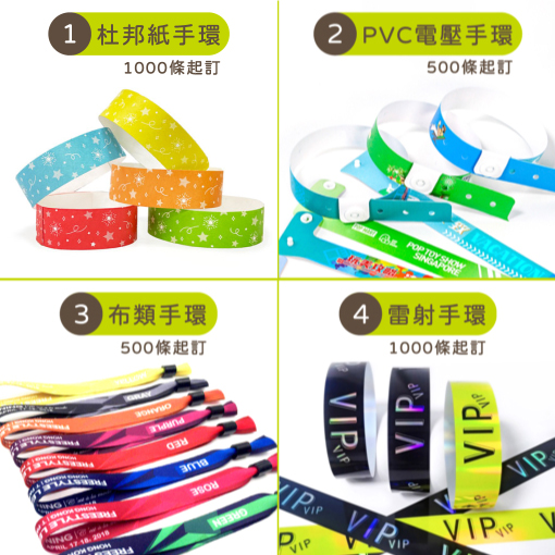 少量大量製作一次性手環,歡迎各大公關媒體、行銷公司、廣告活動公司來信訂做一次性手環入場門票 提供設計圖稿(AI、PSD等向量圖檔)→業務報價→打樣大貨 客製一次性手環設計製作馬上詢價:馬上來信詢問:Email住址會使用灌水程式保護機制。你需要啟動Javascript才能觀看它 或加LINE:@vzt1445m 1. 欲客製的產品 2. 圖稿(或參考圖) 3. 數量 4. 尺寸 5. 公司行號 + 聯絡人姓名電話 6. email信箱(報價單將用email寄送) ※ 若只需要少量可參考程時獨家【星星串 現成款杜邦紙一次性手環】,五種顏色可選,100條即可訂購 客製手環需15-20個工作天,起訂量500-3000(依材質) 若只需少量或是交期很趕,歡迎參考如下現成款2-3天即可交貨! 數量有限,訂購前請先來信告知預訂購顏色、數量 馬上來信詢問:Email住址會使用灌水程式保護機制。你需要啟動Javascript才能觀看它 或加LINE:@vzt1445m