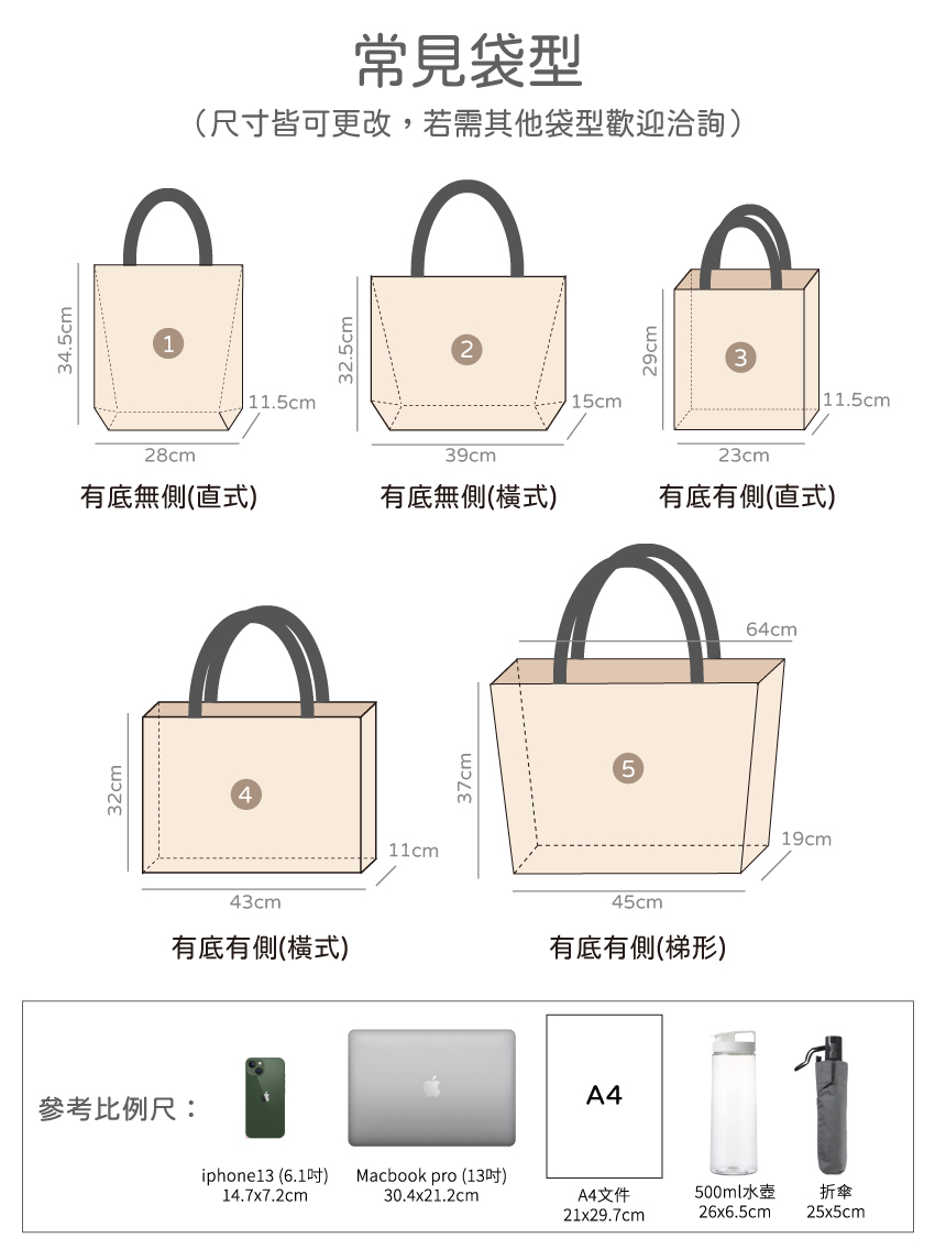 若需其他尺寸亦歡迎來信詢問,可100%客製化訂做提袋尺寸