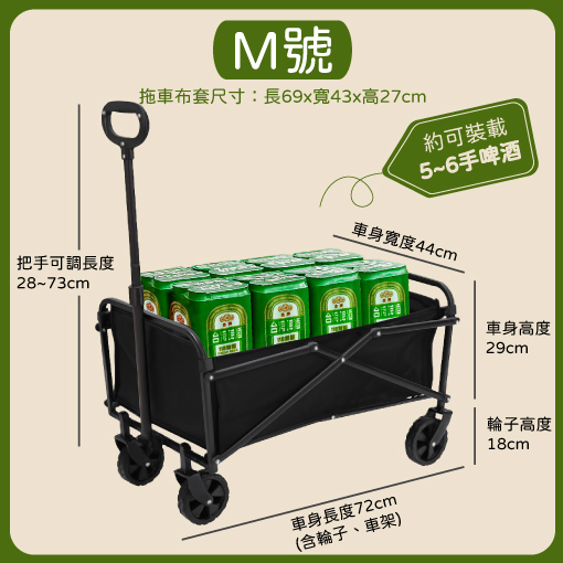 露營推車三種尺寸訂製選擇:S/M/L(點我看詳細尺寸)